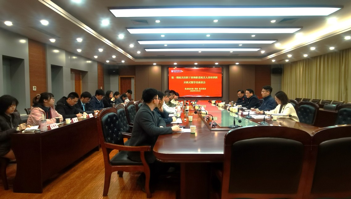 会上,机关党委负责同志介绍了本次培训班的工作整体安排,公布了培训班临时党支部人员组成。培训班学员围绕学校“六向”发展战略和机关干部履职能力提升,结合岗位实践,畅谈思考体悟,表示将珍惜学习良机,锤炼过硬本领,努力提升履职能力,以实干担当为学校事业发展贡献青春力量。
