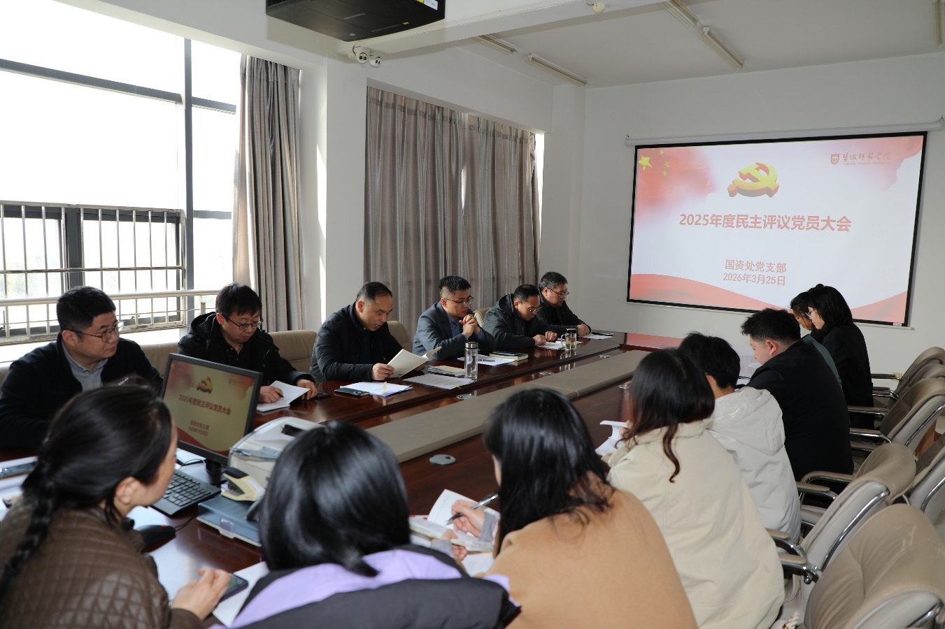3月25日下午,国资处党支部在厚德楼B522会议室召开“深学两会明方向,聚力‘十五五’开新局”主题党日活动,同步开展2025年度组织生活会和民主评议党员工作。支部全体党员参加,支部书记蔡志宏主持会议。