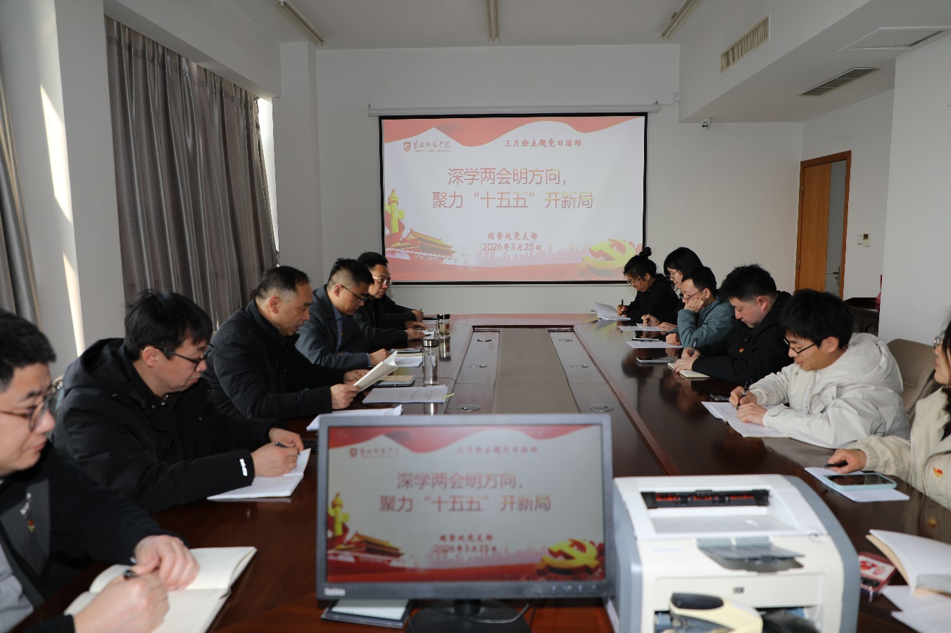 活动中,全体党员专题学习了全国两会重要讲话精神,认真研读《习近平关于树立和践行正确政绩观论述摘编》相关篇目,并集中观看了“十五五”发展战略专题视频课程,进一步统一思想、凝聚共识。